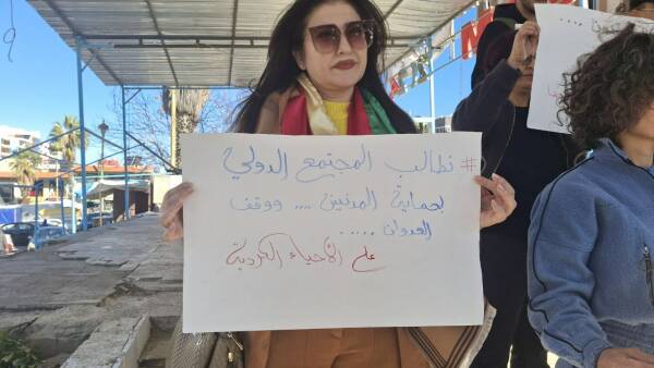 Berdevka Meclîsa Jinên Sûriyeyê ya li Suweydayê Esale Aslan, êrîşên li ser sivîlên taxên Şêx Meqsûd û Eşrefiye yên Helebê şermezar kir û êrîşan mîna "terorîst" bi nav kir.
