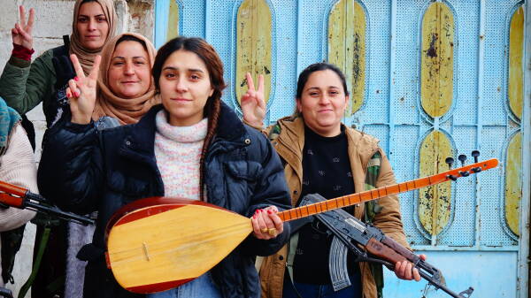 Jinên Til Temirê bi çek û amûrên xwe yên muzîkê beşdarî seferberiyê bûn