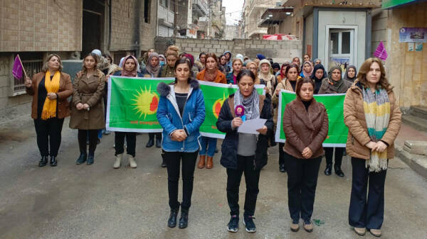 Jinên Kantona Cizîr û Efrîn-Şehbayê û li bajarê Qamişloyê bi pêşengiya Kongra Star û Meclisa Jinan a PYD’ê bi hezaran kes li dijî kiryarên dewleta Tirk ên li ser jinên Efrîna dagirkirî ku herî dawî biryara darvekirinê 2 jinan hat dayîn daketin qadan.