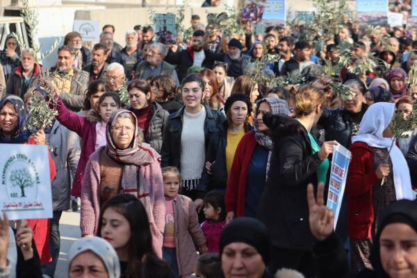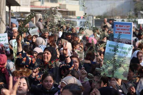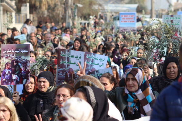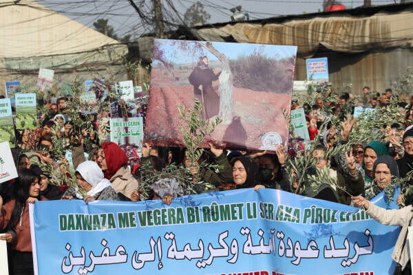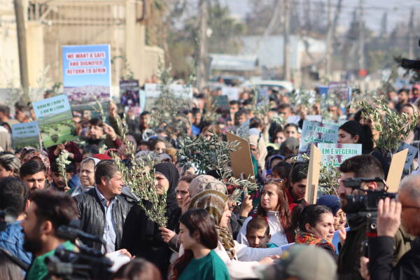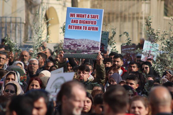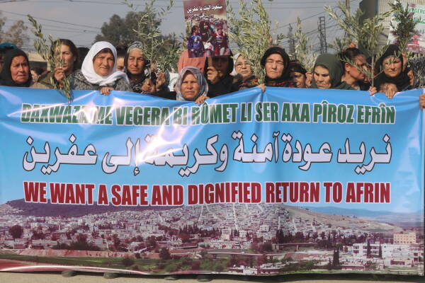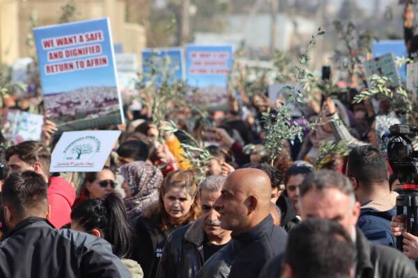 Bi daxwaza vegera bi ewle ya li Efrînê, koçberên Efrînê bi pêşengtiya Komeleya Efrînê meşek li bajarê Qamişloyê lidar xistin û nameyek radestî Netewên Yekbûyî kirin. Meş bi dirûşmeya “Daxwaza me vegera bi rumet a li ser axa pîroz Efrînê” pêk hat. Meş bi tevlîbûna koçberên Efrînê, saziyên civaka sivîl, rêxistinên serbixwe, nûnerên Rêveberiya Xweser, ji ber Stadyuma 12’ê Adarê, destpê kir û li ber avahiya Neteweyên Yekbuyî  (NY) bidawî bû.