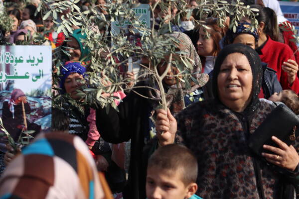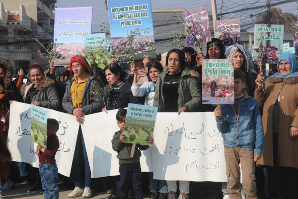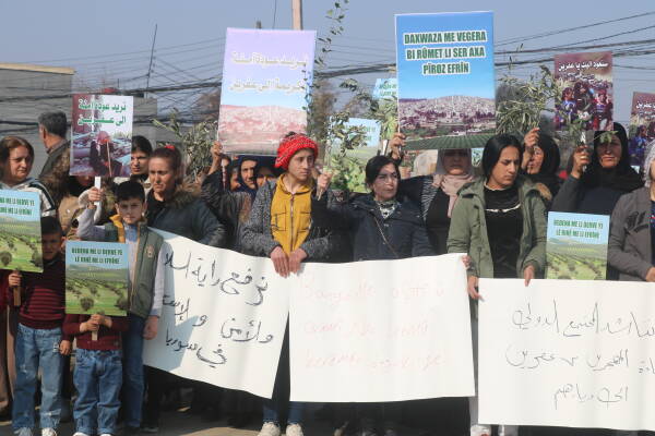 Her wiha koçbera Efrînî Xezal Hesen axivî û wiha got: “Em koçberên Efrînê daxwaza bajarê xwe Efrînê dikin. Dewleta Tirk a dagirker bi êrîşên xwe yên hewayî me ji bajarê me koçber kir û me berê xwe da Şehbayê. Em binpêkirinên ku niha li bajarê Efrînê tên kirin û tundiya dewleta Tirk şermezar dikin. Armanc û îsrara me ku em ê hertim têkoşîn bikin, heta ku em vegerin bajarê Efrînê. Daxwaza me ji saziyên mafên mirovan ew e ku em bi ewle vegerin Efrînê û bi rûmet bijîn.”