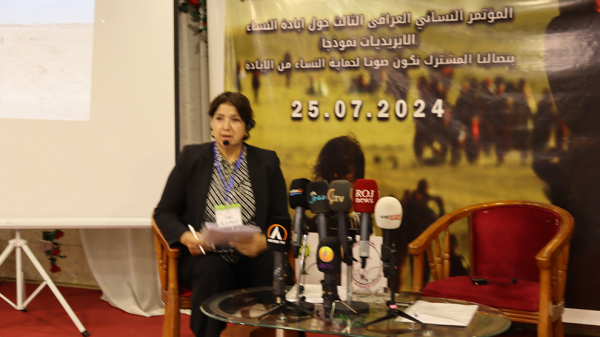Bexda - 3’yemîn Konferansa Jinên Iraqî ya bi boneya salvegera Fermana 3’ê Tebaxa 2014’an bi pêşengtiya Rabîta Jinên Iraqê, Tevgera Azadiya Jinên Êzidî (TAJÊ) û Mûnazama Or ya çand a ji bo jin û zarokan li li hola Qesr El-Sedîr a Bexdayê bi beşdariya gelek jinên ji bajarên Iraqê destpê kir. Konferansa bi dirûşma ‘Bi tekoşîna hevgirtî li dijî qirkirina jin bibe dengê xweparastinê’ destpê kir berdewam dike.