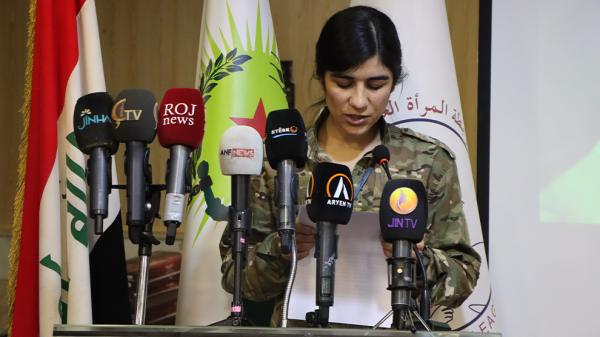 Berdevka Tevgera Jinên Azad a Kurdistanê (RJAK) Newal Wehab axivî û da zanîn ku amadebûna wan ya divê konferansê de ji bo piştevaniya hemû jinên Êzidî ye û wiha got: “Em îro ji bo hemû jinên Êzidî yên rastî tundî û çewisandina hovane hatine û piştgirî û piştevaniya xwe nîşan bidin li vir in. Têkoşîna me ya hevpar ne tenê dirûşme, belkî erkek mirovî û exlaqî ye. Em deyndarê her jinên Êzidî yên ku mafên wê tên binpêkirin û jiyana wê di bin gefê dene. Ji bo parastina jinên Êzidî pêwîste em bibin dengekî xurt û bibandor, hewl bidin ku zagon û polîtîkayên ku tundî û cudakariyê didomînin biguherînin. Divê em piştgirî bidin sazî û komeleyên ku ji bo parastin û alîkariya ji jinên rizgarbûyî re bêwestan dixebitin û di belavkirina hişmendî û perwerdeyê de li ser mafên jinên Êzidî û girîngiya rêzgirtina li wan dixebitin.”