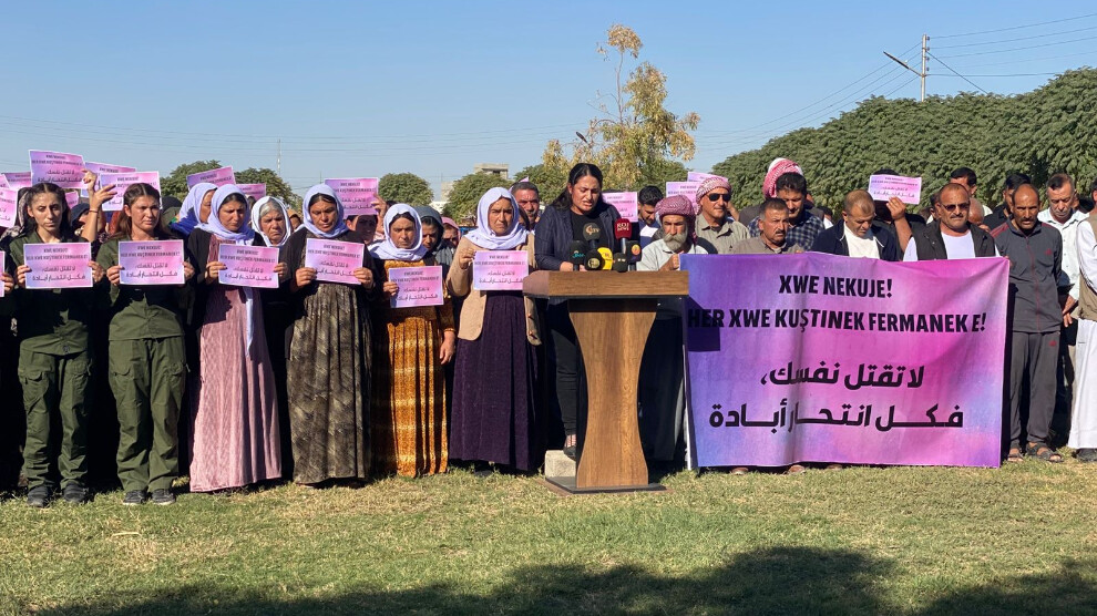 Şengal – Li Şengalê ji ber sedema zêdebûna her cure tundiyê her wiha xwekuştina jin û mêran Tevgera Azadiya Jinên Êzîdî (TAJÊ) li Parka Şehîd Dijwar a Xanesorê, bi tevlîbûna endamên Yekîtiya Jinên Ciwan ên Şengalê û hemû sazî û dezgehên Rêveberiya Xweser a Şengalê pêngava ‘Xwe nekuje, her xwekuştin fermanek e’ bi daxuyaniyek ji raya giştî re ragihand.