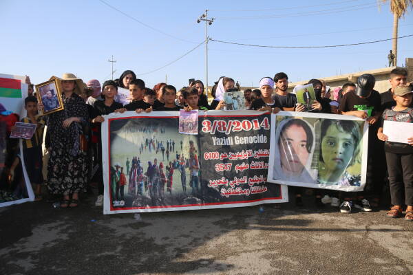 Şengal - Bi wesîleya 9’emîn salvegera fermana li ser civaka Êzidî ya ku di 3’yê Tebaxa 2014’an de ji aliyê çeteyên DAIŞ’ê ve hat pêkanîn, bi pêşengiya Meclisa Xweseriya Şengalê bi hezaran kes meşiyan.