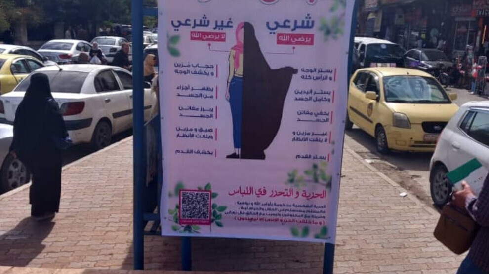 Afîşên ku kontrola li ser bedana jinan ji nû ve zindî dikin, li bajarê Hamayê ya Sûriyeyê bi navê "cil û bergên şerîetê" li kolanan hate daliqandin. Ev, quralên ku DAIŞ’ê di demên berê de li Sûriye û Iraqê bi darê zorê ferz dikir, tîne bîra mirovan.