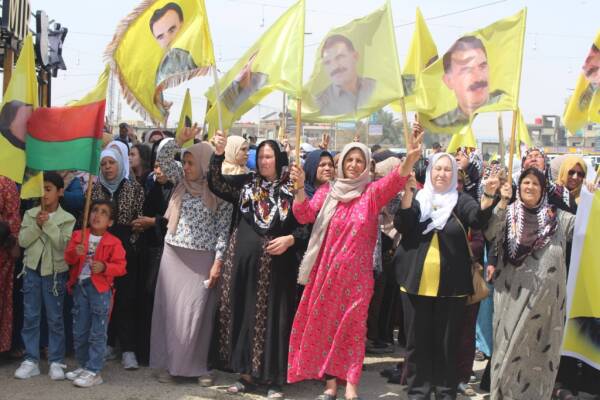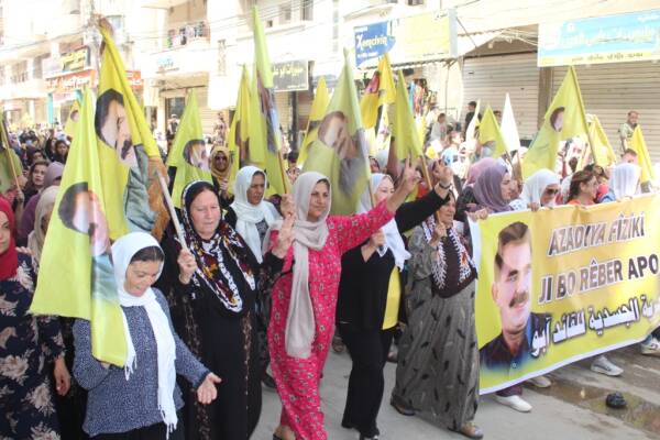 Pêkhateyên Kurd, Ereb, Suryan û Ermen ên li Hesekê di meşa bi dirûşmeya “Dem dema azadiya fîzîkî ya Rêber Apo ye” de destnîşan kirin ku pêdiviya Rojhilata Navîn bi nêrînên Rêberê Gelê Kurd Abdullah Ocalan heye.
