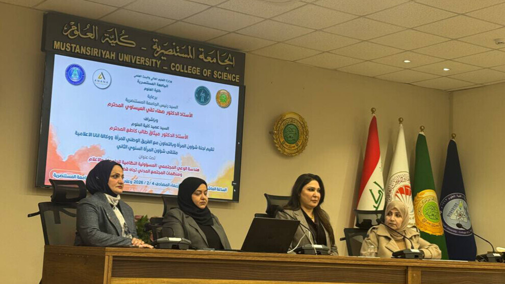 Iraq- Komîteya Karûbarên Jinan, bi hevkariya Tîma Jinan a Neteweyî û Ajansa Medyayê ya Inanna, li Fakulteya Zanistê bi sernavê "Endezyariya Hişmendiya Civakî: Berpirsiyariya Zanîngehan, Medyayê û Civaka Sivîl a ji bo Hevgirtina li ser Pirsgirêkên Jinan” 2’yemîn Foruma Karûbarên Jinan a salane li dar xist.