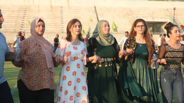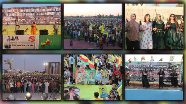 Bi boneya 12’emîn salvegera Şoreşa Rojavayê Kurdistanê, ya ku di 19’ê Tîrmeha sala 2012’an de li bajarê Kobanê dest pê kir û heta roja îro berdewam dike; şêniyên bajarê Qamişlo û navçeyên wê li stadyûma şehîdên 12’ê Adarê ya bajarê Qamişloyê bi şahiyekê pîroz kirin. Şahî bi dirûşma "Bi ruhê Şoreşa 19’ê Tîrmehê em ê dagirkiriyê têk bibin û Sûriyeya Demokratîk û ne navendî ava bikin" û tevlibûna bi hezaran kes û sazî û rêxistinên jin, Meclisa Malbatên şehîdan û saziyên Rêveberiya Xweser bi deqeyek rêzgirtinê dest pê kir: