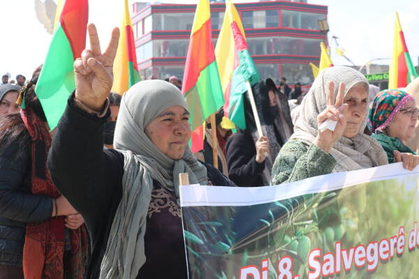 Îro bi diruşma “Di 8’emîn salvegerê de em dagirkeriyê şermezar dikin, em vedigerin Efrîna xwe”, bi sedan şêniyên bajarê Kobanê û koçberên ji Efrînê ku li Kobanê dimînin, çalakiyek li dar xistin. Gel li qada Jina Azad a bajarê Kobanê kom bû. Bi hilgirtina alan, çiqlên Zeytûnan û diruşmên “Bijî berxwedana Efrînê” ji qada Jina Azad heta qada Aştiyê meşiyan û li wir rawestiyan.