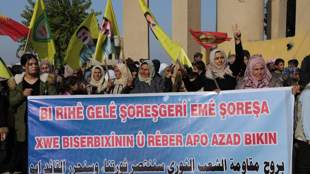 Şêniyên navçeya Şêranê ya kantona Kobanê ji bo azadiya fîzîkî ya Rêberê Gelê Kurd Abdullah Ocalan meşiyan. Jinan gotin: “Heya şikandina tecrîdê û bidestxistina azadiya fîzîkî ya Rêberê xwe emê têbikoşin.”