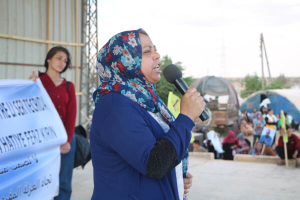 Piştî meş li wargehê vegeriya mêtîngê, bi deqeyek rêzgirtin dest pêkir. Piştre endama Koordinasyona Kongra Star Efrîn-Şehba Necah Hisên axivî. Necah Hisên wiha got: “Em bi tundî, tecrîda girankirî li ser Rêber Apo şermezar dikin. Ev tecrîda girankirî tê wateya şikandina îradeya Rêber Apo û gelê azadîxwaz. Di van demê dawî de qirêjiya siyaseta dewleta tirk derket holê ew jî bi şandina nameyên gef li Rêber Apo didin û di heman demê de nahêle ne parêzer ne malbeta Rêber Apo pê re hevdîtin çêbikin, ev hemû rûya rast a siyaseta tunekirina gelên azadîxwez derdixîne eşkere dike. Em ê heya dawiyê li ser piya û çalakiyan de bin ji bo azadiya fîzîkî ya Rêber Apo misoger bikin û dawî li tecrîdê bînin. Em ji tecrîd û gefên wan tu carî natirsin.”