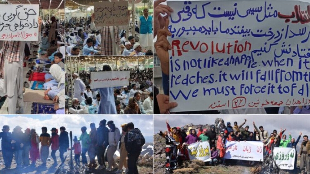 Navenda Nûçeyan- Serhildanên ku ji 16’ê Îlonê û vir ve li Îran û Rojhilatê Kurdistanê berdewam dikin, bi ruhê berxwedanê ya Newroza nêzîk dibe berdewam dike. Duh bi şev jî li gelek bajaran gel daket qadan û li dijî hikûmetê xwepêşandan li dar xistin. Ji bilî xwepêşandanan, gel li çiyayên Rojhilatê Kurdistanê agir pêxistin.