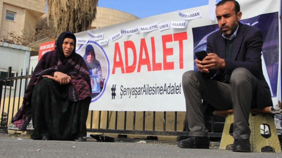Riha - Nobeta Edaletê ya Emîne Şenyaşar a di 14’ê Hezîrana 2018’an de li navçeya Pirsûsa Rihayê hevjîn û du lawên wê ji aliyê xizm û parastvanên wekîlê AKP’î Îbrahîm Halîl Yildiz ve hatin qetilkirin û lawê wê Ferît Şenyaşar ê ji êrîşê bi birîndarî rizgar bû, li pêşiya Edliyeya Rihayê dabûn destpêkirin, di roja xwe ya 700’emîn de ye. Malbata Şenyaşar ku ji ber erdhejê di roja 700’emîn de navber dabû çalakiya xwe, îro dîsa hate ber deriyê Edliyeya Rihayê dest bi nobetê kirin.