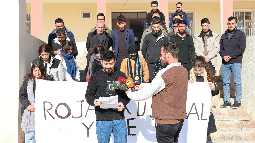 Şengal- Saziya Ziman û Perwerdeya Şengalê îro li Medresa ya Sor a navenda Şengalê der barê komkujiya li dijî gelê Rojava daxuyaniyek da. Daxuyanî bi beşdariya hemû mamosteyên Şengalê hat dayîn.