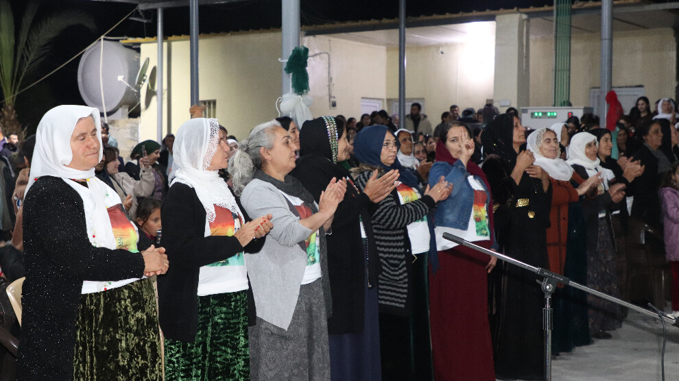 Piştî axivtinê ji bo rojbûna Rêberê Gelê Kurd Abdullah Ocalan paste hat jêkirin. Dema paste hate jêkirin gelê wargehê dirûşmeya ‘4’ê Nîsanê li Rêber pîroz be’ berz kir. Piştî jêkirina pastê Koma Stêra Zêrîn stranên xwe pêşkêş kir.
