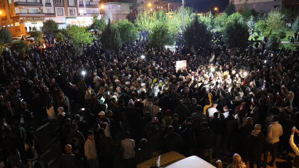 Welatiyên ku heta navçeyê ji sê bendên lêgerînê û GBT’ê derbas bûn, piştî saetan gihîştin qada mihrîcanê. Girseya ku ji saetên sibehê ve hat rawestandin li dora saet 19.00 de ket navçeyê. Ciwanên ku bi meşê hatin cihê mihrîcanê, wêneyên Mustafa Dag û Mehsûm Karaoglan ên sala 2009’an di meşa Amarayê de hatibûn kuştin hilgirtin. Ciwanên ku bi dirûşman ketin qadê, ji aliyê girseyê ve bi guleyên hewayî hatin pêşwazîkirin. Piştî pêşwazîkirinê, peyama Rêberê Gelê Kurd Abdullah Ocalan a di hevdîtina 31’ê Adarê de li Îmraliyê ji bo ciwanan şand hat xwendin. Di peyama ku ji aliyê xortekî ciwanên DEM’ê ve hat xwendin de bal hat kişandin ser xebat û biryardariya ciwanan. Ciwanên ku bi baldarî li peyamê guhdarî kirin, di dawiyê de çepik lêdan û dirûşmên “Biji Serok Apo” qîriyan.