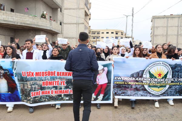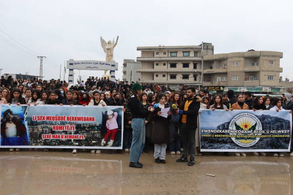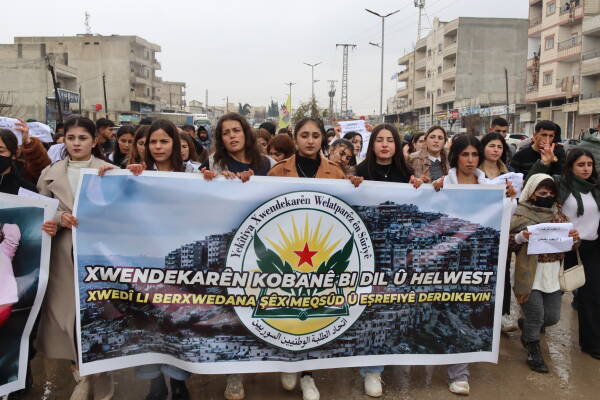 Xwendekarên Kobanê li dijî dagirkirina Şêx Meqsûd û Eşrefiyê meşiyan
