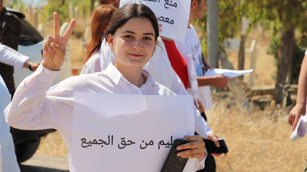 Xwendekarên Mexmûrê ji bo mafê xwendinê meşek li dar xistin