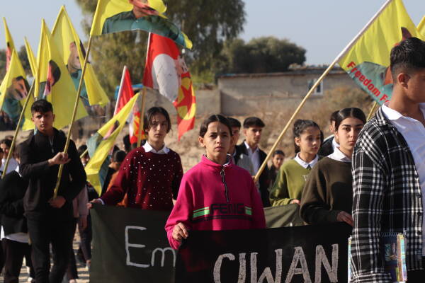 Xwendekarên meclisa YXA a wargeha penaberan a Mexmûrê ji bo tecrîda girankirî ya li ser Rêberê Gelê Kurd Abdullah Ocalan rabe, meşek girseyî li dar xistin.