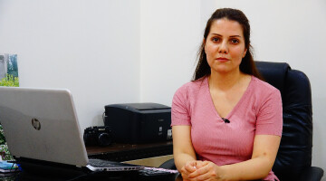 Endam û kemeramana JIN TV’yê Sewsan Elî ya ku yek ji penaberên Serêkaniyê ye, dibêje ku JIN TV deng û rûyê jinê ye, her wiha ji bo ragihandina rastiya civakê dixebite.