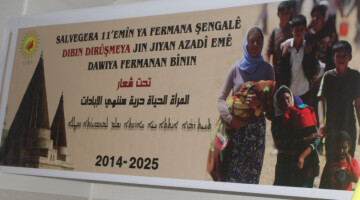 Bi boneya salvegera 11’emîn a Fermana Şengalê di bin dirûşma “Bi Jin Jiyan Azadî em ê dawiya fermanan bînin” Yekîtiya Jinên Êzidî komcivînek li dar xist.