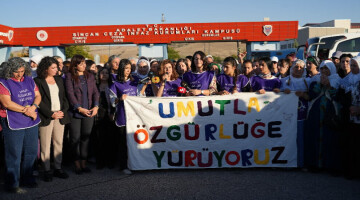 Jinên ku bi dirûşma “Bi hêvî ber bi azadiyê ve dimeşin" ji Amed dest bi meşê kirin, li ber Girtîgeha Sîncanê ya Enqereyê daxuyanî dan û gotin: “Di şexsê Brêz Ocalan de bi berdana girtiyên siyasî ve em ê Aştî û Civaka Demokratîk ava bikin.”