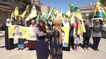 Jin bi nameyan xwe dighînin rêberê xwe Abdullah Ocalan