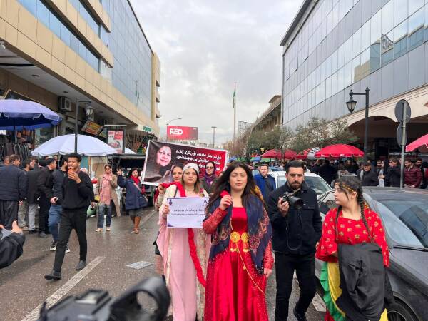 بە دروشمی "هەتا ژن ئازاد نەبێت کۆمەڵگە ئازاد نابێت" لە سلێمانی ڕێپێوان کرا