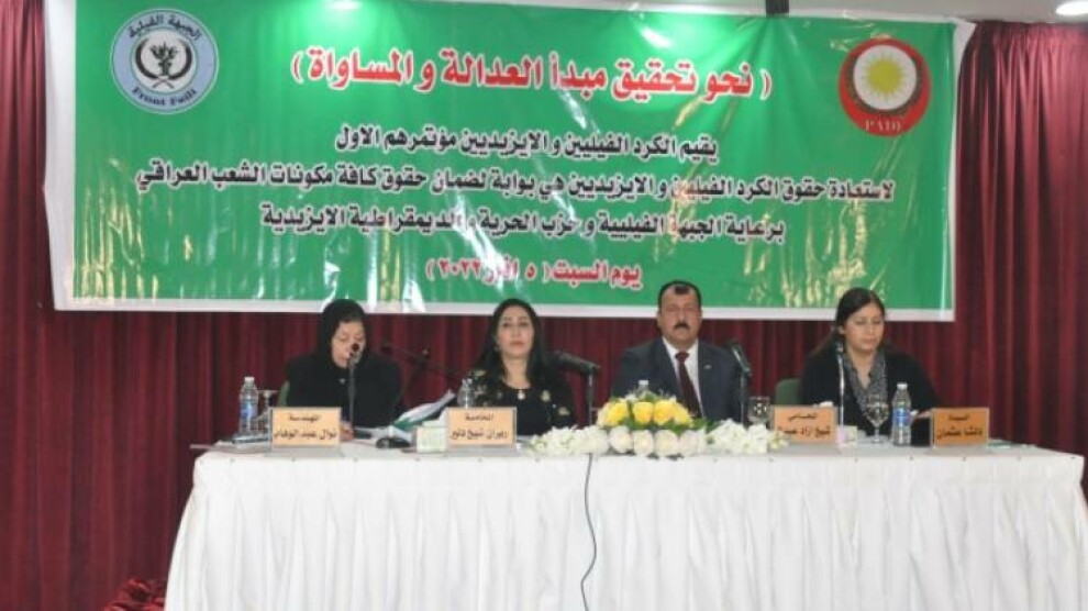 کۆنفرانسی "بەرەو بەدیهێنانی بنەمای دادپەروەریی و یەکسانیی" لە بەغدای پایتەخت باس لە دۆخی ژنان لە پێکهاتەی کوردی فەیلی و ئیزدییەکان کرا و ئاماژە بەوەدرا کە لە هەموو ئەو کۆمەڵکوژییانەی بەسەر ئێزدییەکان و فیلییەکاندا هاتووە، هەمیشە ژنان پشکی شێریان بەرکەوتووە.