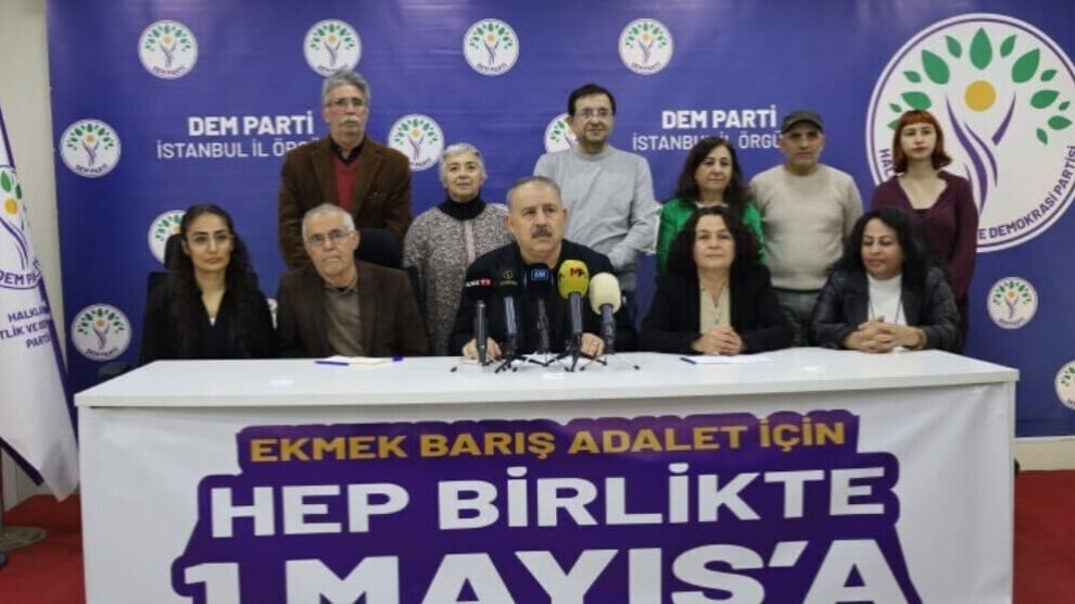 ڕێکخستنی ئیستەنبوڵی پارتی دیموکراتیک و یەکسانیی گەلان "دەم پارتی" سەبارەت بە ١ی ئایار، ڕۆژی جیهانیی کرێکاران بە درووشمی "بۆ ڕەنج، ئاشتی و دادپەروەری پێکەوە دەچینە ١ـی ئایار" ڕاگەیاندراوێکی بڵاوکردەوە. ڕاگەیاندراوەکە لە باڵەخانەی پارتەکە بەڕێوەچوو و پانکارتی " بۆ ڕەنج، ئاشتی و دادپەروەری پێکەوە دەچینە ١ـی ئایار" دانرا. نوێنەرانی پارتە سیاسییەکان، ڕێکخراوەکانی ژنان و سەندیکاکان بەشدارییان کرد.