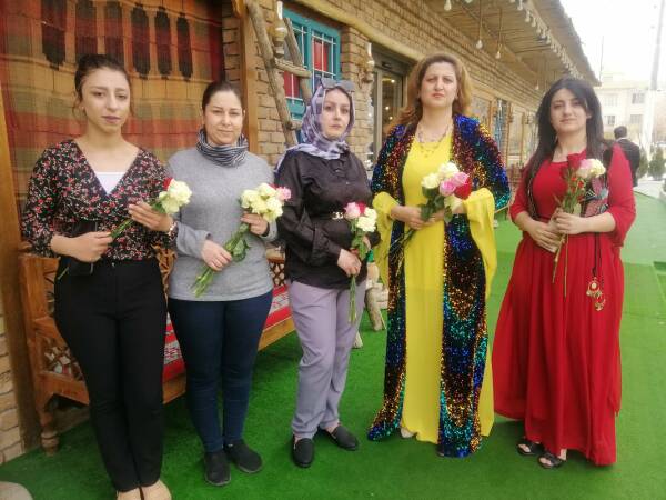 ژنانی ئازادیخواز گوڵیان پێشکەشی ژنانی ڕەنجکێش کرد
