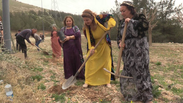لە درێژەی چالاکیەکانی ٨ی ئاداردا، ژنانی ئازادیخوازی چوار پارچەی کوردستان گوڵیان بەسەر ژنانی ڕەنجکێشدا دابەشکرد و ١٦ نەمامیان بۆ ڕۆحی ژینا ئەمینی چاند.