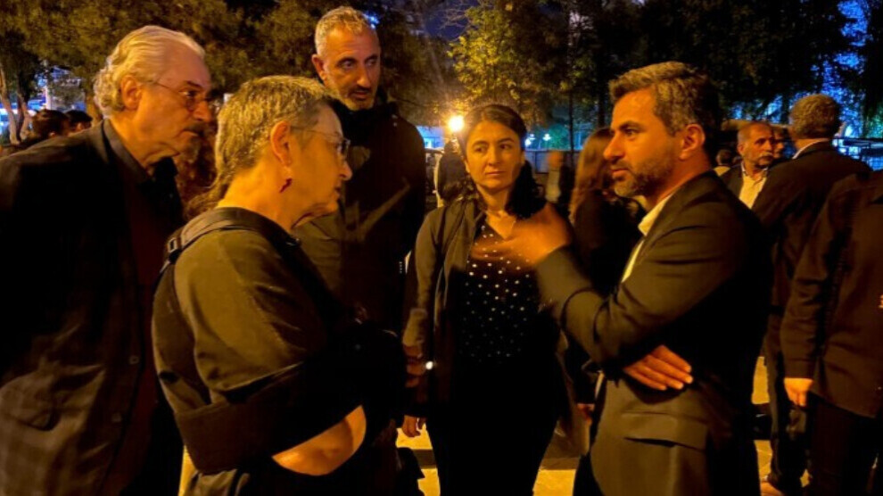 شەبنەم کۆرور فینکانچی، دوای وتارەکەی لەبەردەم دادگا، لەگەڵ سەرۆکی سەندیکای پارێزەرانی ئامەد، ناهیت ئێرن قسەی کرد.