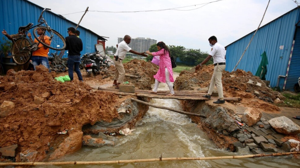 دەسەڵاتدارانی شاری بەنگالۆری هیندستان تراکتۆریان بەکارهێناوە بۆ رزگارکردنی دانیشتوانی ئەو خانووبەرانەی کە بەهۆی لافاوەوە زیانیان بەرکەوتووە و بەهۆی لافاوەوە زیاتر لە چەند کەسێک گیانیان لەدەستداوە.