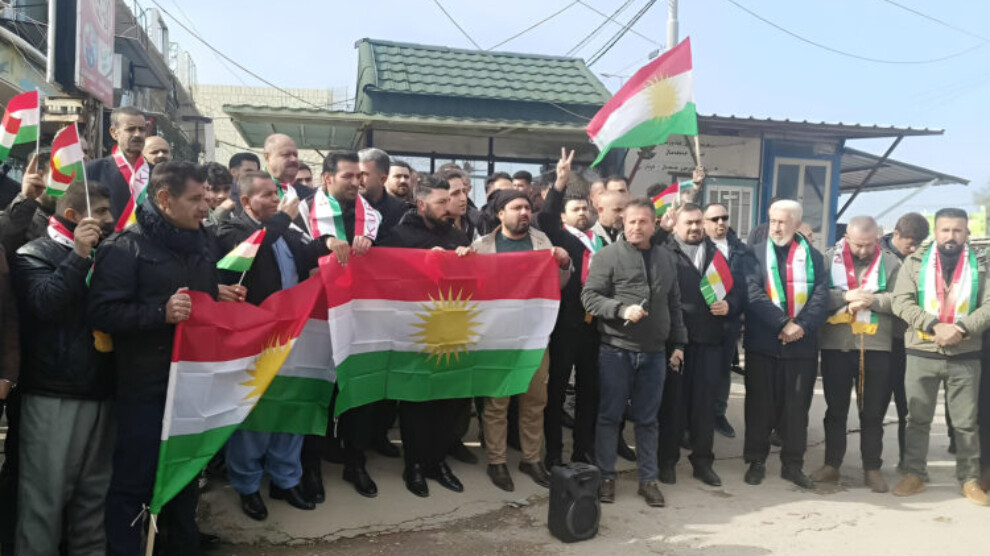 خۆپیشاندەران بە درووشمەکانی “بژی بەرخۆدانی ڕۆژئاوا” و “لە باکووربم یان باشوور، کوردستانم هێڵی سوور” و “بەزریان و ڕەشەبا ناکەوێت لوتکەی چیا” بەردەوامن لە پشتگیریکردنی بەرخۆدانی ڕۆژئاوا لە دژی چەتەکانی جۆلانی و دەوڵەتی داگیرکەری تورک.