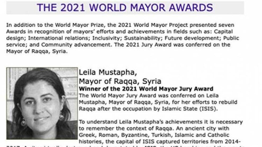لە کۆی نۆ کەس خەڵاتی شارەوانی جیهانی بۆ ساڵی ٢٠٢١ درایە سەرۆکی شارەوانی ڕەقا "لەیلا مستەفا".