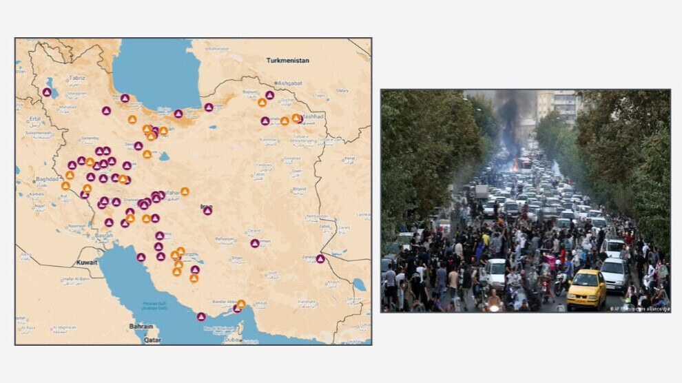لە کاتژمێرەکانی سەرەتای بەرەبەیانی ئەمڕۆ، تۆڕی ڤاتۆکسی ئۆسینت نەخشەیەکی بڵاوکردەوە کە بەدواداچوون بۆ پێنج ڕۆژی یەکەمی شەپۆلی نوێی ناڕەزایەتییەکان دەکات و تێیدا کۆبوونەوەکانی ٧٢ شاری ئێران پیشان دەدات، ئامارەکان ئاماژە بەوە دەکەن کە هەندێک ناوچە لە ڕۆژی یەکەمەوە بەشدارییان کردووە، لە کاتێکدا لانیکەم ١٥ شاری دیکە لە ڕۆژی چوارەمدا بەشداریان کردووە.