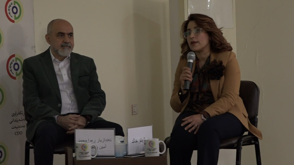 هەریەکە لە ژینۆ خالید، مامۆستای زانکۆ سەبارەت بە''ڕۆژی زەوی لە جیهانێکی گۆڕاودا، کێشە نێودەوڵەتییەکان و پابەندییە ژینگەییەکان و ڕەوا مەحەمەد، ئەندازیار، دەربارەی''وزەی نوێ بۆ داهاتوویەکی بەردەوام، چارەسەرییەکانی وزەی پاک بۆ کەمکردنەوەی گۆڕانی کەش'' لە پانێلەکەدا گفتوگۆیان کرد.