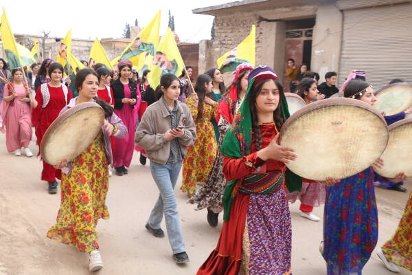ڕێپێوانەکە لە کەمپی سەردەم سەر بە ناحیەی ئێهداس و گوندی تیل قیرە و ناحیەی ئێرێزی سەر بە کانتۆنی شەهبا بە دروشمی "ژن-ژیان-ئازادی"، دەستی پێکرد، پاشان ئاهەنگی ٨ی ئادار بەڕێوەچوو.