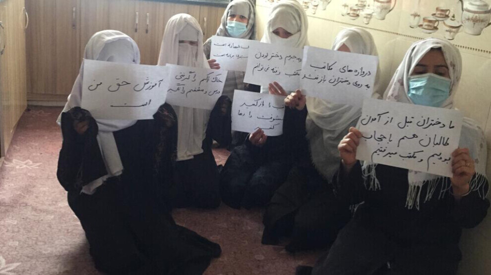 ژنانی ئەفغانی لەخۆپیشاندانێکدا کاردانەوەیان بەرامبەر داخستنی ئامادەییەکانی ژنان لەئەفغانستان نیشانداو ژنانی خۆپیشاندەر لە یەکێک لە پارێزگاکانی باکوری ئەفغانستان بە دروشمی "نان و کار و خوێندنەوە و حیجاب بەهانەی پیلانی دژی ژنانە" داوای کردنەوەی خوێندنگایان بۆ ژنان کرد.