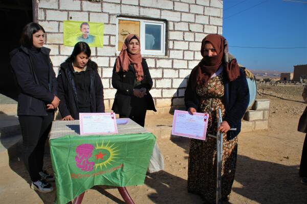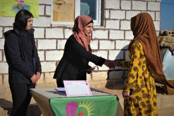 Hesekê - Türk devletinin, Til Temir ve kırsal bölgelerine yönelik saldırılarına rağmen genç kadınların örgütlülüğü de sürüyor. Ekonomiyi geliştirme amacıyla Genç Kadınlar Hareketi, Kuzey ve Doğu Suriye’nin Hesekê kentindeki Til Temir ilçesindeki Ên El-Ebid köy komününde 11 Haziran 2022’de Medya Savunma Alanları’ yaşamını yitiren YJA-Star gerillası Rîhan Xelef (Berfîn Botan) adına dikiş çalışması başlattı. Eğitimleri sonlanan katılımcılara sertifikaları dağıtıldı.