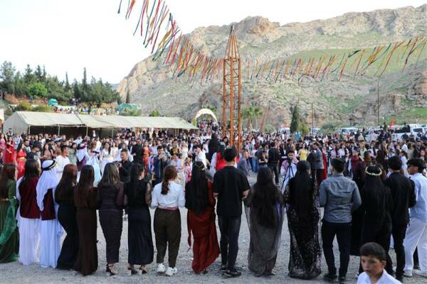 Şengal’de düzenlenen Çarşema Sor bayramında Êzidîler geleneksel kıyafetleriyle bir araya geldi. Kadınlar bayram alanında birlik mesajı verdi.