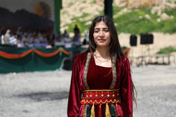 Mexmûr’dan Şehit Adil Mêrdîn Atölyesi Üyesi Zehra Tarhan, Şengal’e ilk kez geldiğini belirterek bayram için alanda olduğunu anlattı. Zehra Tarhan, “İlk kez Şengal’e geldik ve Çarşema Sor bayramına katıldık. Şehit Adil ve Şehit Delîla atölyesi olarak buradayız. Bu toplulukta yer almak, Êzidîlerin sevincini paylaşmak bizim için de bir mutluluk kaynağıdır. Onların farklı kültürünü yakından gördük. Kültürlerine çok bağlılar. Birbirlerine karşı saygı duyuyorlar ve insanlara sarılıyorlar. Biz de çok mutlu olduk. Êzidîler Kürt kültürümüzün bir parçasıdır. Êzidîler de kendi kültürleri, topraklarına ve dinlerine bağlılıklarıyla bugüne kadar gelmişlerdir ve bu bir mutluluk kaynağıdır. Bilindiği gibi Êzidîler tarih boyunca en çok saldırıya uğrayan halklardan biridir ve bu saldırılara karşı her zaman direniş içinde olmuşlardır” şeklinde konuştu.
