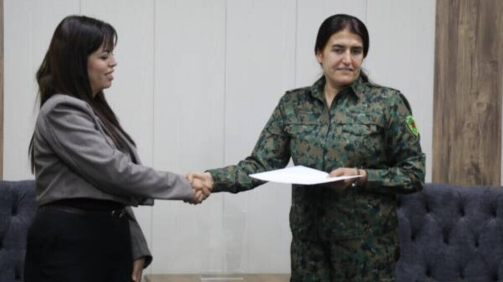 Ortadoğu’nun farklı ülkelerinden, Mısır, Lübnan, Sudan ve Yemen’den kadınlar, YPJ saflarındaki kadın savaşçılara destek ve dayanışma mesajları yazdı. Kampanya kapsamında, Ortadoğu Jineoloji Akademisi’nden altı kadından oluşan bir heyet, bugün Kadın Koruma Birlikleri komuta merkezini ziyaret ederek bu mesajları resmi olarak teslim etti.