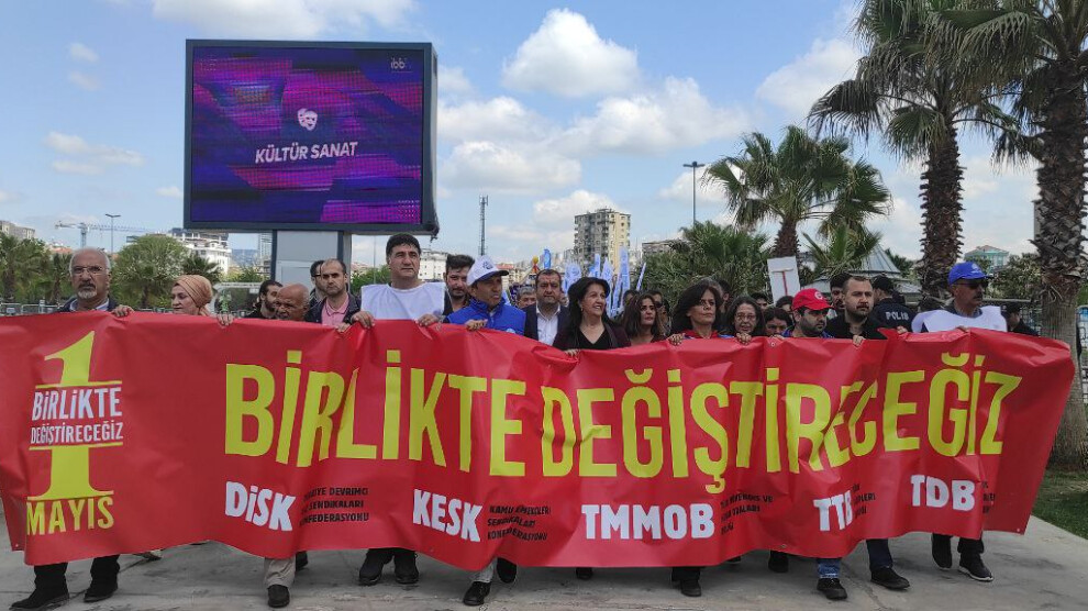 İzmir'de üç koldan gerçekleştirilen yürüyüşte işçi ve emekçilerin miting alanı Alsancak oldu. Türk-İş, Kamu-İş ve Liman-İş üyesi işçiler Alsancak Limanı’nda; DİSK’e bağlı sendikalar Basmane Meydanı’nda; KESK, TMMOB, İzmir Tabip Odası, Siyasi partiler ve dernekler ise Cumhuriyet Meydanı’nda; Emek Partisi de fuar Montrö kapısında toplanmaya başladı. Miting Gündoğdu Meydanı’nda saat 13.00'te başladı ve onbinlerce kişi taleplerini dile getirdi.