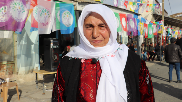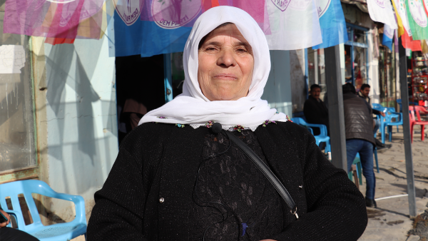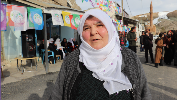 Kadınlardan Zeliha Kısa, kırk yıldır kendi partisine oy verdiğini söyleyerek bu sene de oyunu DEM Parti’den yana kullanacağını dile getirdi. Kayyımların geldiği günden bu yana kendisi dışında kimseye bir çalışma yapmadığını söyleyen Zeliha Kısa, “Biz bu seçimde kendimize oy vereceğiz. Kendimiz dışında kimseye de oy yok. Bu halka ait olan her şeyde gözleri var. Biz bize ait olanı geri alacağız. Allah’ın izni ve kendi gücümüzle belediyelerimizi geri alacağız. Kayyım bize bir çalışma yapmadı ki. Geldi belediyeyi borçlandırıp gitti. Bizle her daim buradayız, kanımızın son damlasına kadar partimizin yanındayız” dedi.