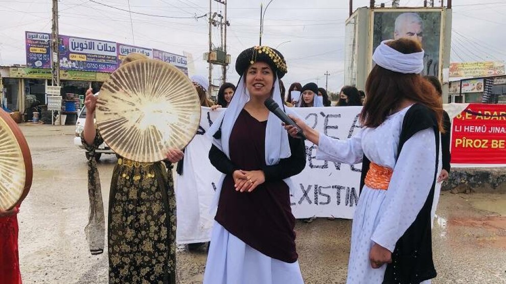 Êzidî genç kadınlar 8 Mart bildirisi dağıttı