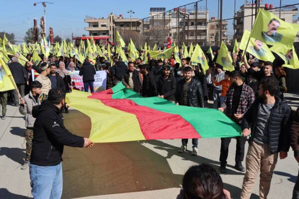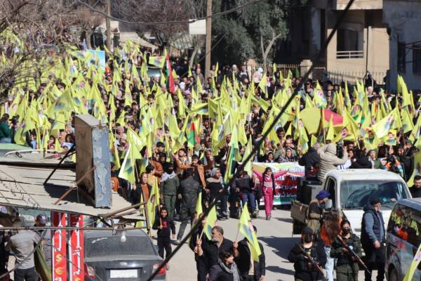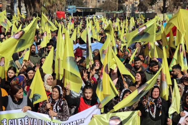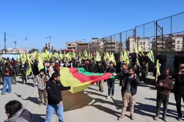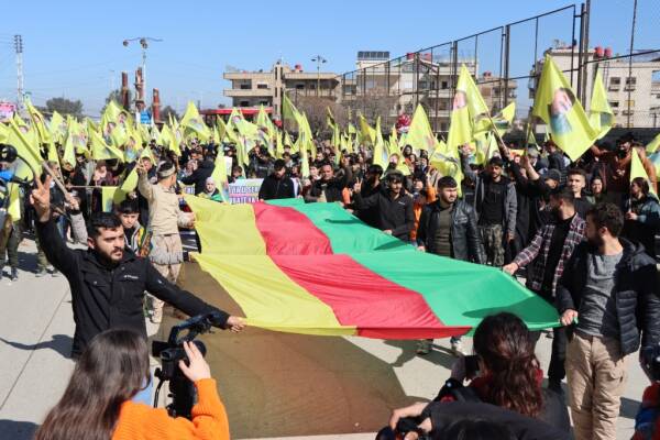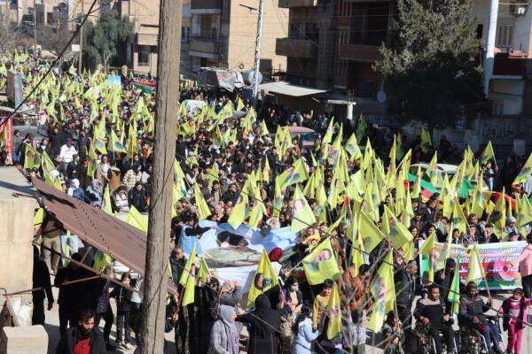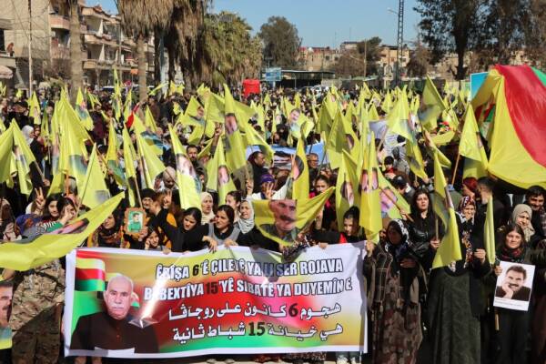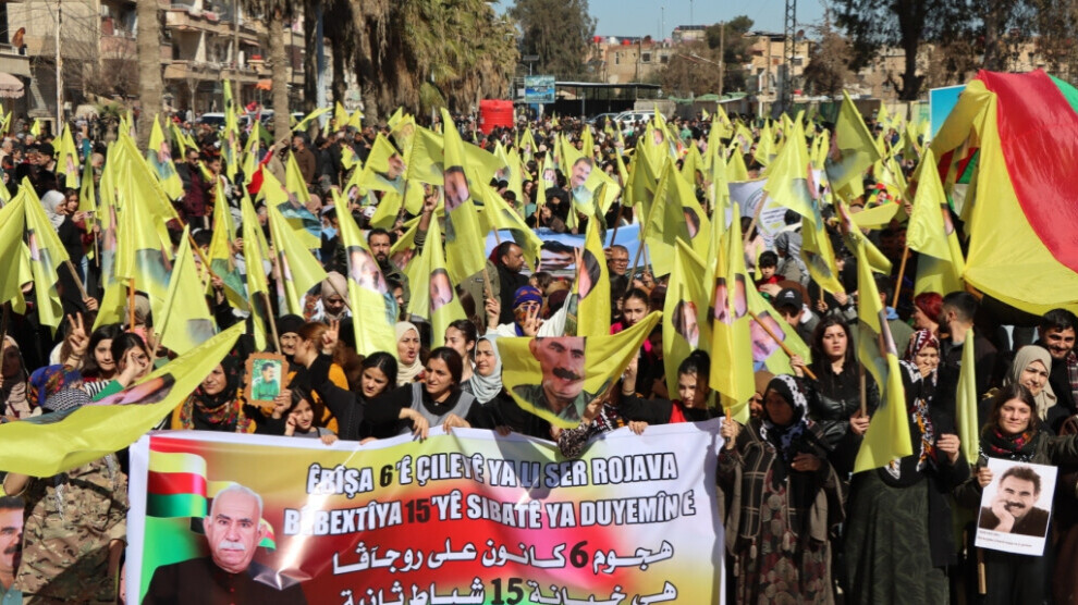 Hesekê’de düzenlenen yürüyüşte halk, Rojava’ya saldırıları “ikinci 15 Şubat komplosu’ olarak nitelendirerek Kürt Halk Önderi Abdullah Öcalan’ın fiziki özgürlüğü için çağrıda bulundu.