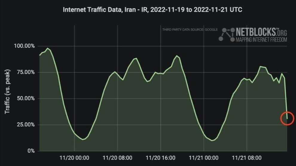 Bu bağlamda küresel interneti denetleyen bir sivil toplum kuruluşu olan Net Blocks da internette büyük bir kesintinin tescil edildiğini ve birçok kullanıcının interneti kullanmadığını duyurdu.  İran'ın yerel medyası da cep telefonu operatörlerinin uluslararası internetlerinin kesildiğini ve sadece yerel internetin mevcut olduğunu doğruladı.
